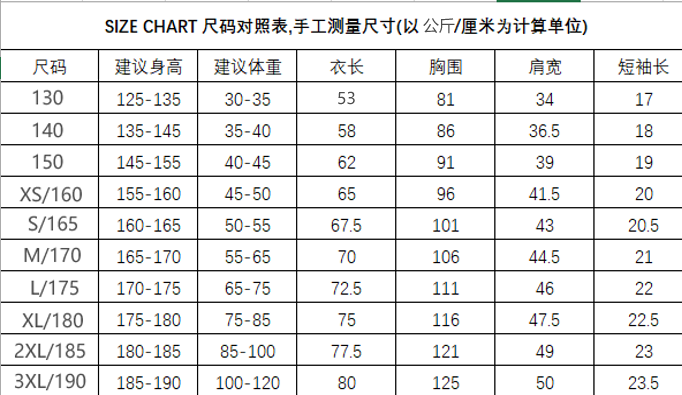 4、参赛服装尺寸表